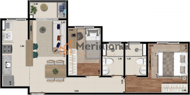 -Configurações em: 51,80m² , 52,11m² , 52,87m²
