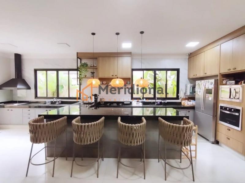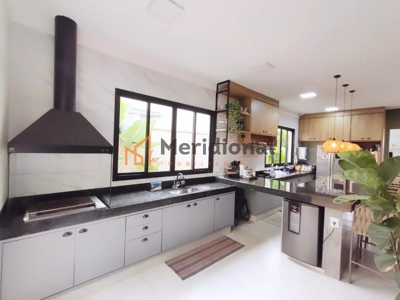 -Ampla cozinha gourmet com churrasqueira com fogão e coifa embutidos