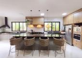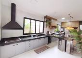 -Ampla cozinha gourmet com churrasqueira com fogão e coifa embutidos